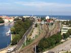 Bahnhof am Kreuzfahrtschiff | Blick vom Schiff Hohe Düne | Leuchtturm und Teepott | WARNEMÜNDE CRUISE CENTER |